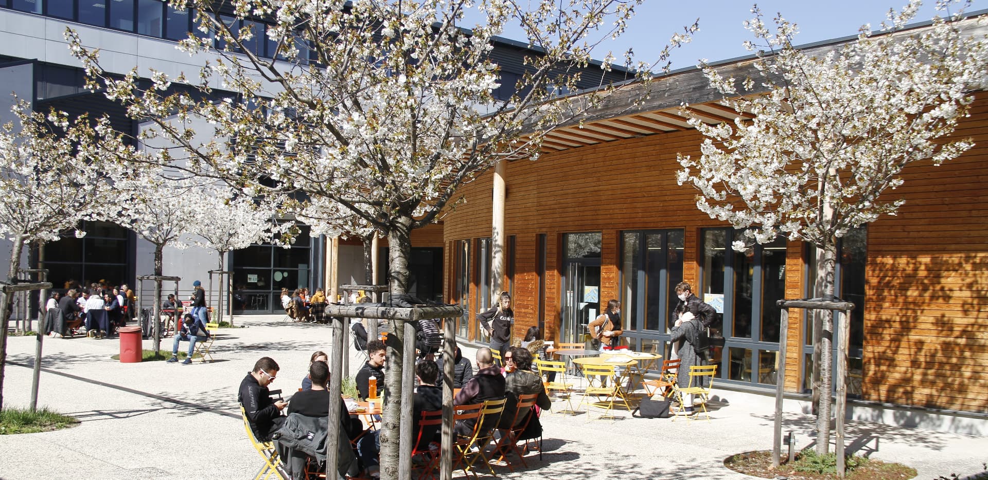 Terrasse du restaurant self-service du campus de Lyon