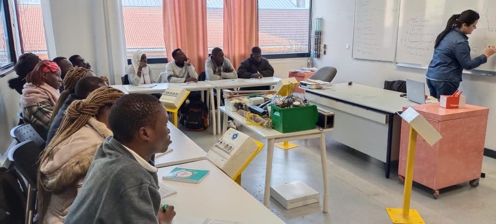 Six de ces apprenants viennent du Burkina Faso et étudient au centre de formation Don Bosco à Bobo-Dioulasso. Les six autres viennent du Sénégal et étudient au centre de formation Don Bosco Melidina Fall à Thiès. Ils poursuivent leurs formations professionnelles en électricité et ont effectué une immersion d’un mois dans nos locaux dans différents cours : électricité, numérique et en électronique avec nos apprenants.